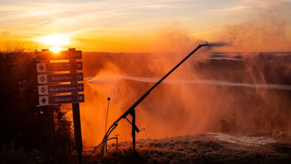 La station procède en pleine saison des couleurs à des tests sur les canons à neige. « À partir de nos stations de pompage du lac Tremblant et de la rivière, on met de l’eau dans les tuyaux principaux afin de s’assurer que l’alimentation en eau est bien fonctionnelle. »