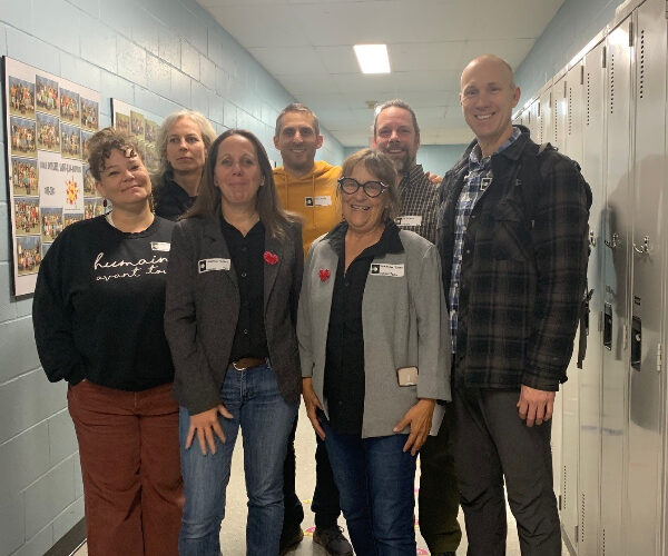 Dominique Forget avec son équipe, en attente des résultats. (Photo – Emmanuelle Verschaeve)