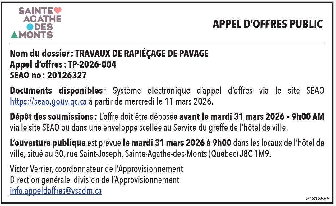 Avis public – Sainte-Agathe-des-Monts