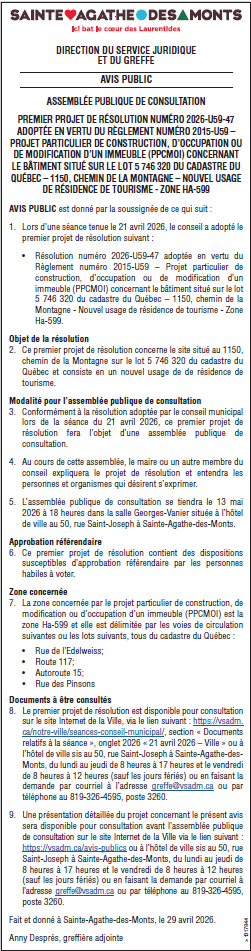 Avis public – Sainte-Agathe-des-Monts