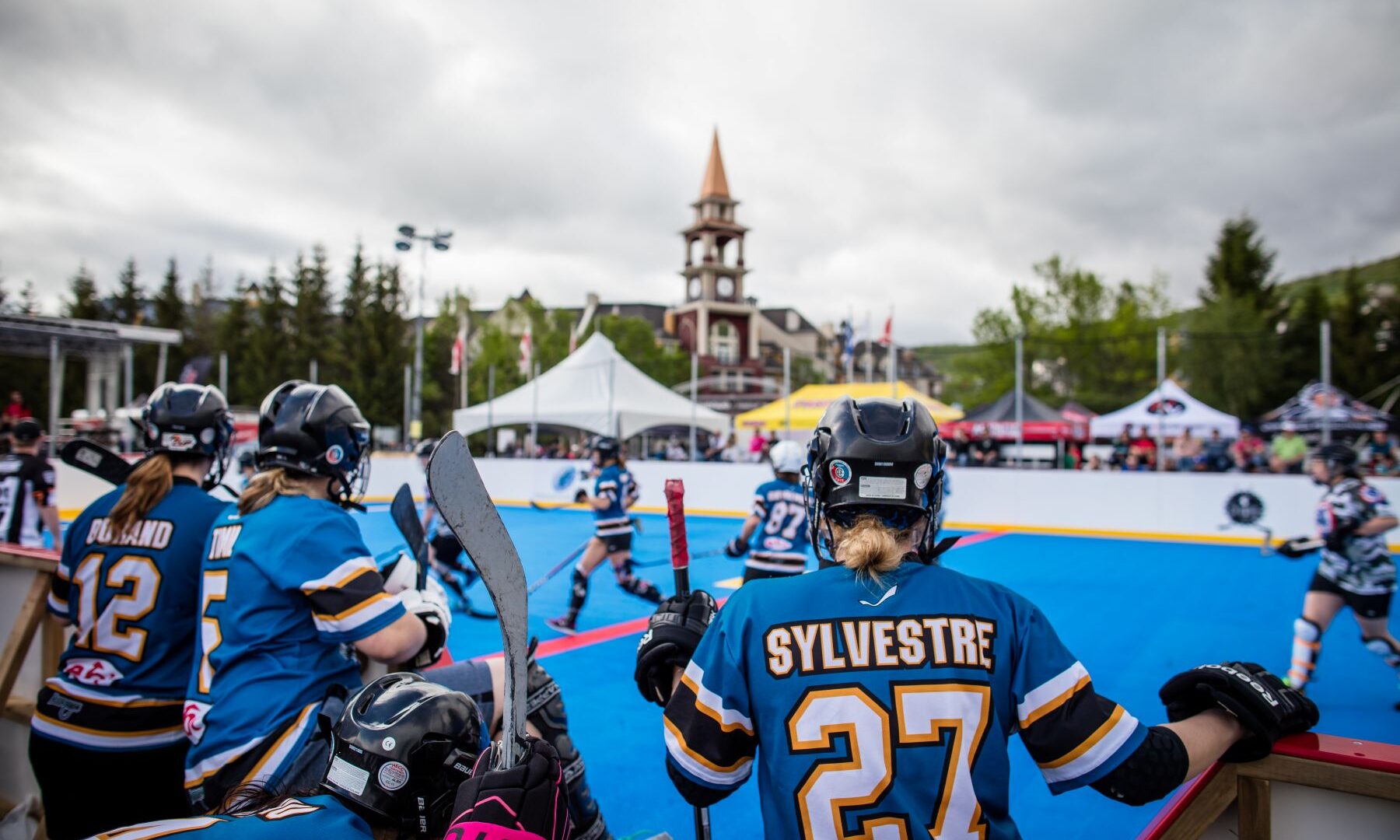 Pour l’occasion, onze surfaces seront construites au pied du village de Mont-Tremblant. Ces surfaces de jeu sur lesquelles les équipes rivalisent sont composées de tuiles de plastique texturées. On dit qu’elles offrent une expérience de jeu uniforme, avec des rebonds prévisibles, et une adhérence qui permet des changements de direction rapides. Les aires de jeu sont délimitées par des bandes, comme au hockey sur glace.