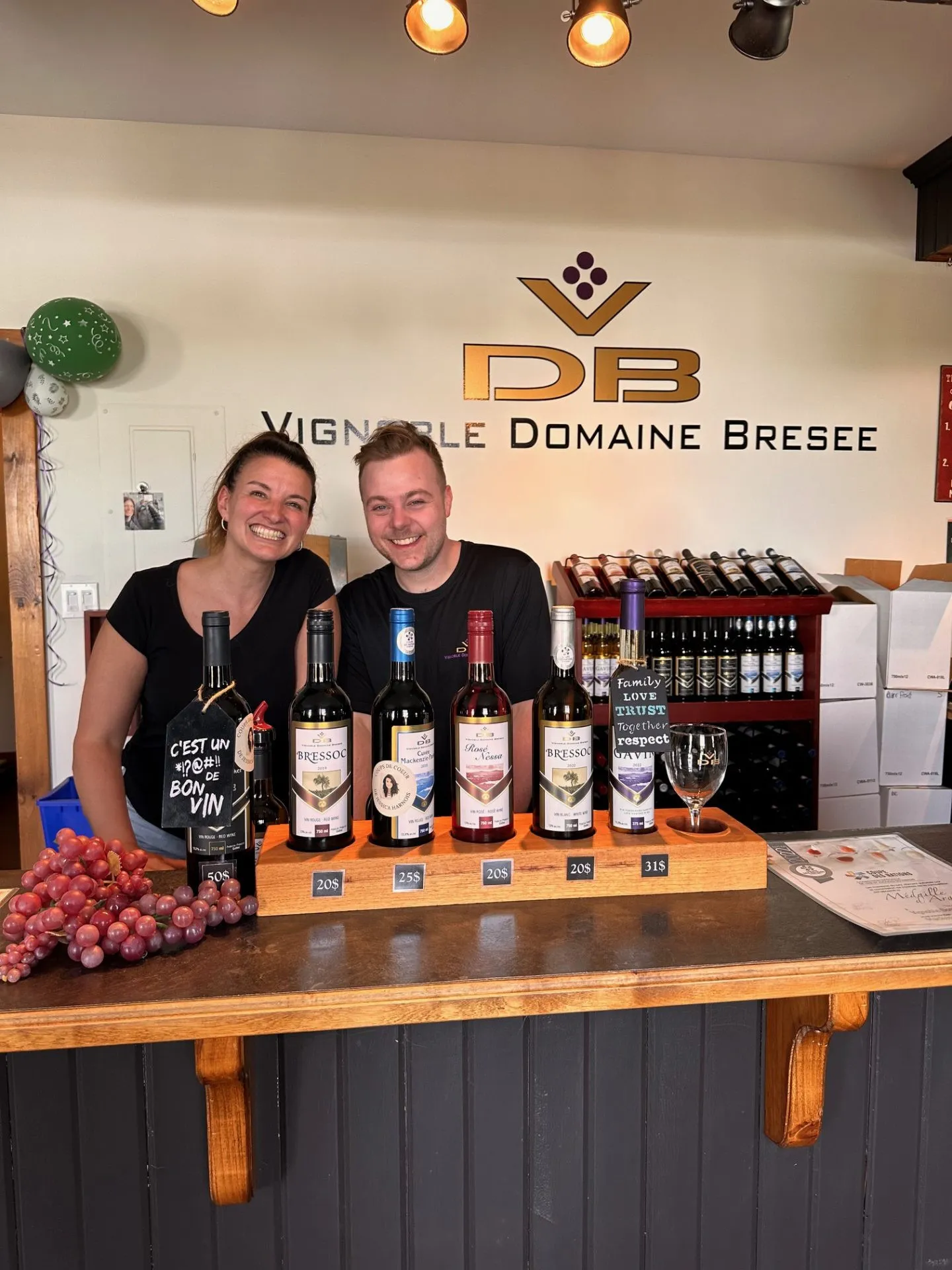 Notre premier arrêt nous a menés au Domaine Bresee à Sutton. L’accueil chaleureux est leur marque de commerce. On a dégusté plusieurs vins, mais c’est le rouge qui a volé la vedette. Si vous n’avez pas essayé le Mackenzie-Parker, fait entièrement à base du cépage Sainte-Croix, c’est votre chance! Délicieux avec des grillades sur le BBQ, vous serez séduits par ses arômes de fruits confits et de caramel torréfié. Il est disponible au domaine et à la SAQ.