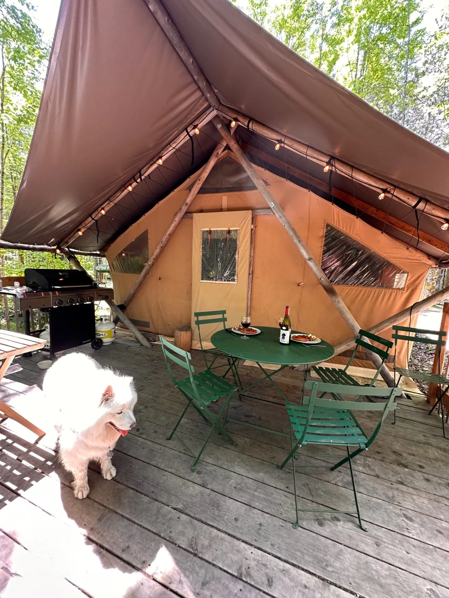 Le soir venu, nous nous sommes installés au Huttopia Sutton. Après avoir garé notre véhicule, nous avons fait une petite randonnée dans la forêt. L’air frais et l’odeur des pins sentaient le bonheur. De retour, on a allumé un feu de camp et partagé un moment de grande complicité en se remémorant des souvenirs d’enfance.
